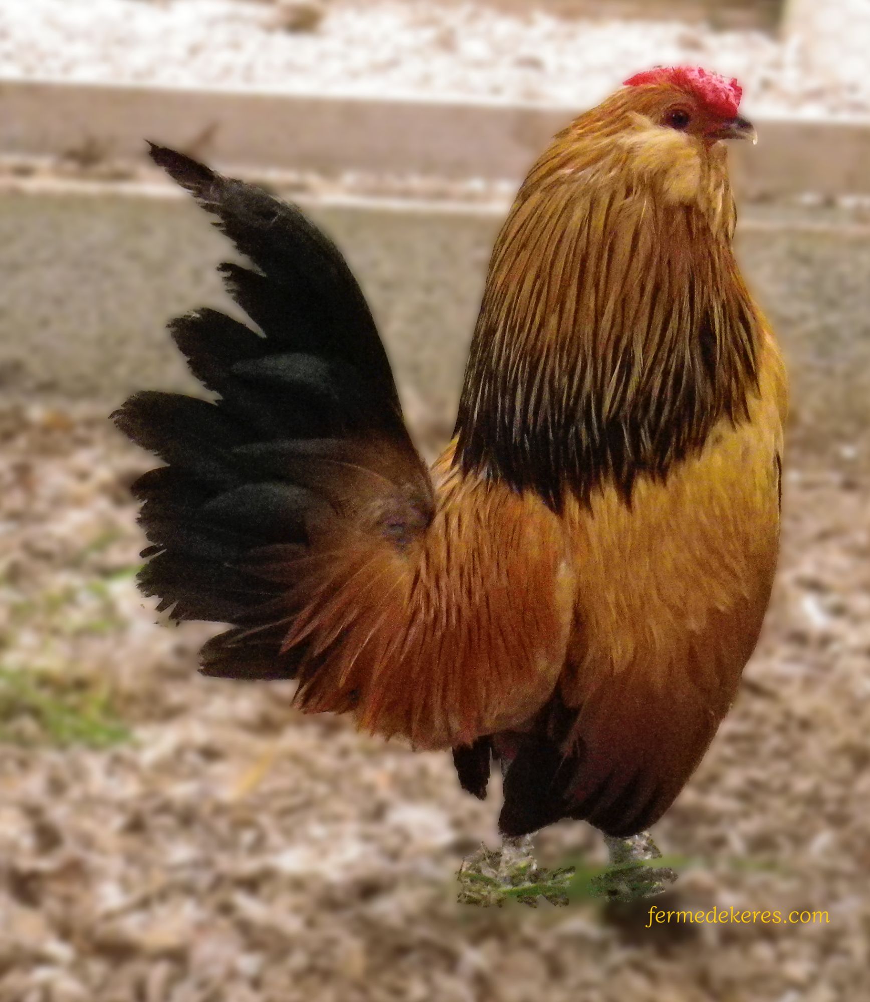 Le coq est haut comme trois pommes mais très fier et n'a peur de rien, y compris d'un autre coq bien plus gros que lui ou… de vous ! Vif, redressé et très investi par de sa mission de protecteur de ses dames, il ne lâche pas l'affaire facilement. Son courage force l'admiration ! Si sa taille ne présente pas de danger important lorsqu'il attaque, il faut quand même prendre garde de ne pas se baisser pour préserver ses yeux si on a affaire à un petit coq sur de lui.