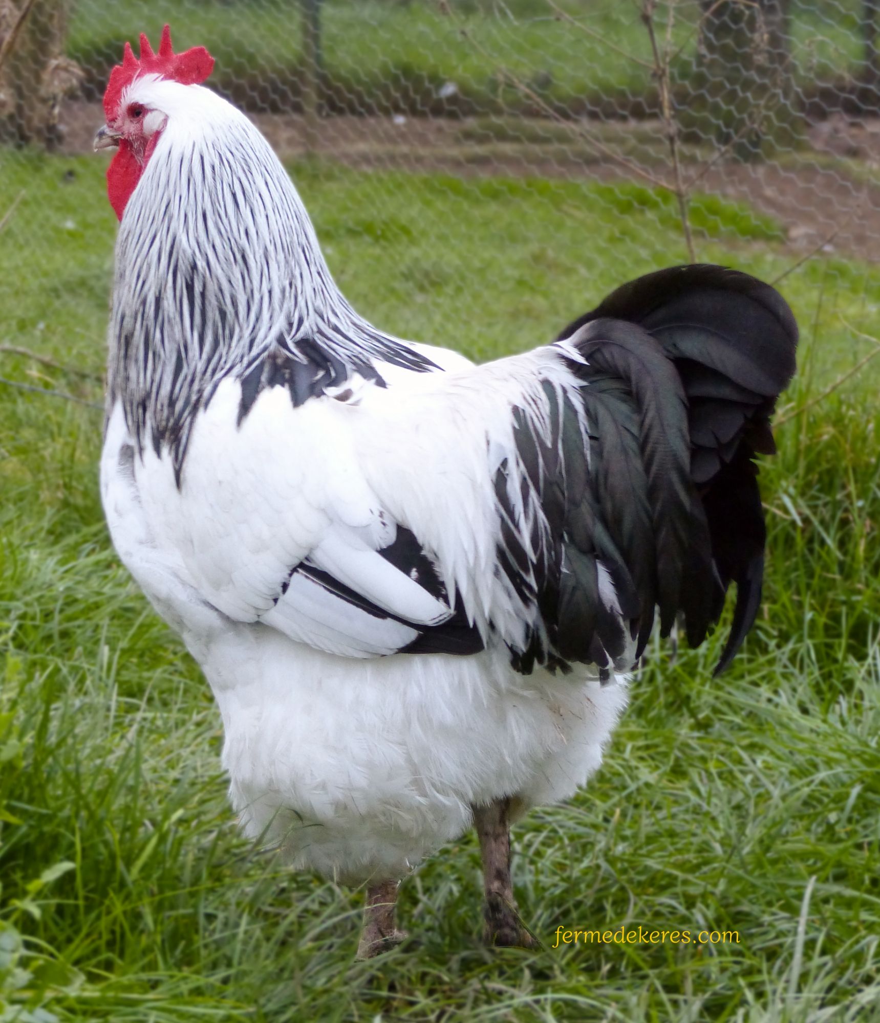Le coq est un gros format, surtout dans le coloris blanc herminé noir, qui doit être marié avec des poules de gabarit fermier ou plus grosses car il pourrait abimer des poules de taille plus petites s'il n'en n'a pas assez ou qu'il est jeune et vigoureux. Il est en général plutôt "cool" mais cela reste un coq et si vous vous y prenez mal, il défendra ses poules !