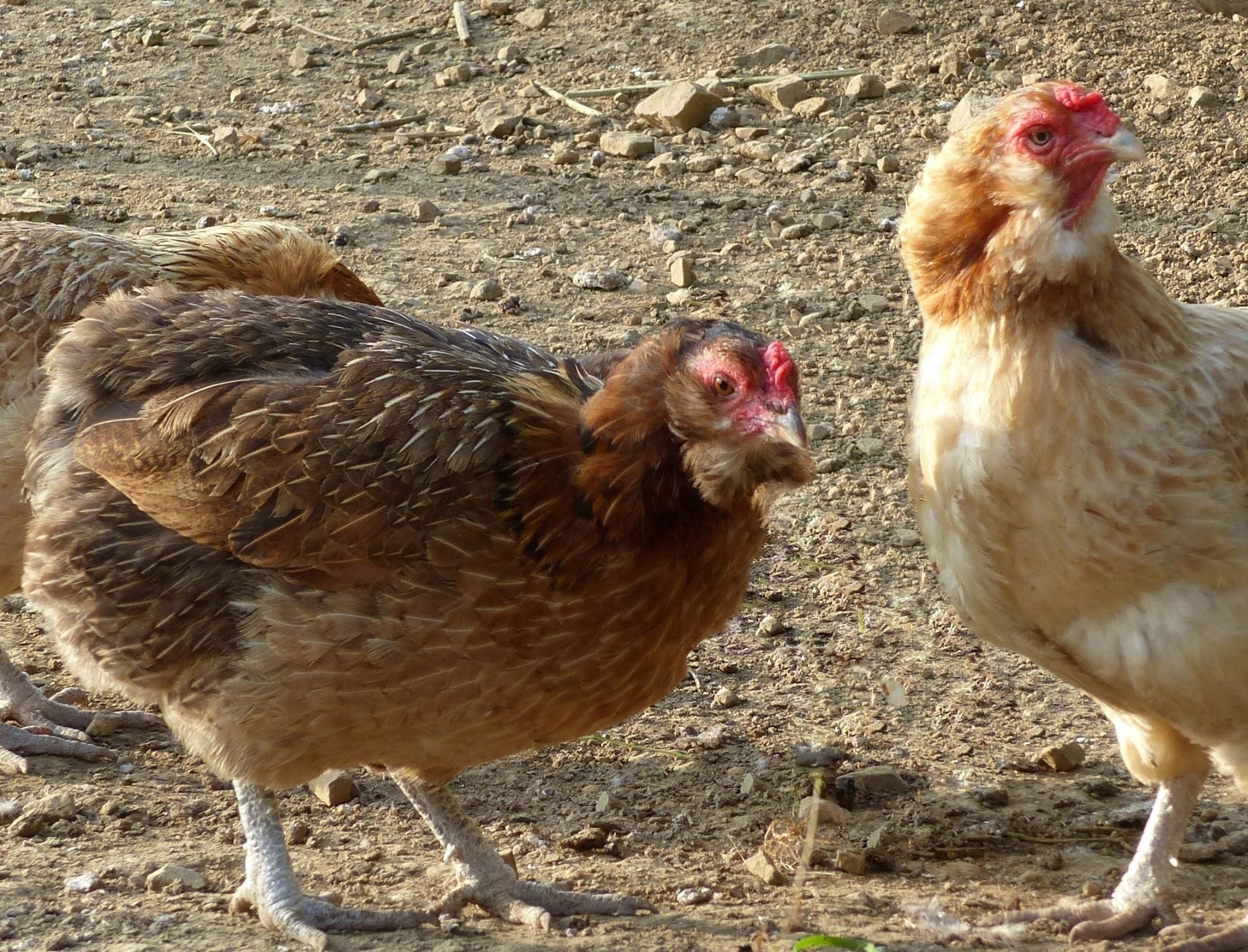 Les sujets vendus ne sont pas forcément d'un coloris défini, conforme au standard. Ils seront toujours dans les tons bruns, mais plus ou moins clairs ou foncés, comme les poules de la photo ci-dessus.