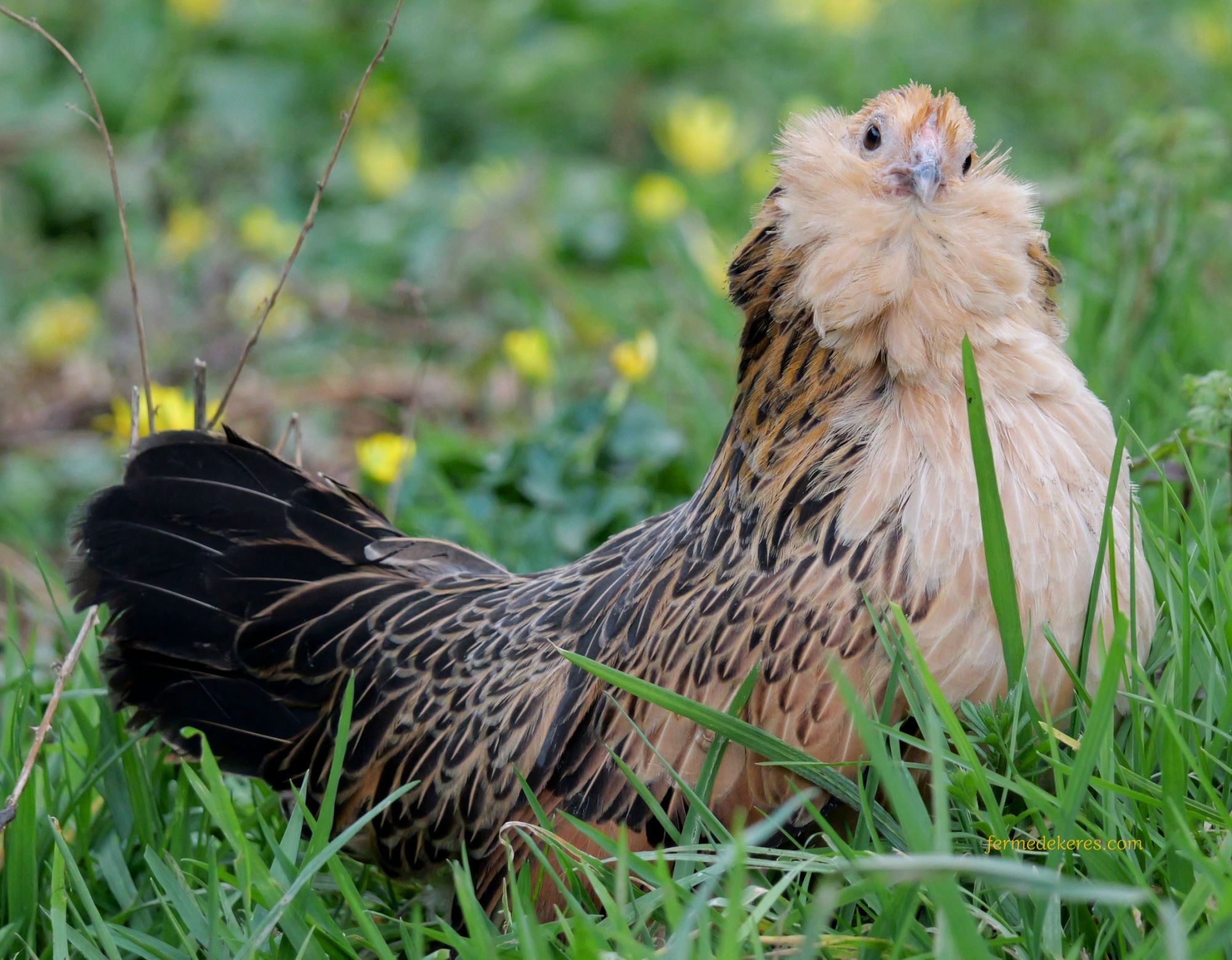 Il est à noter que la barbe augmente en volume avec les années. Les poules photographiées ici sont des poules reproductrices de plusieurs années. Les jeunes poules de l'année (celles qui sont vendues) sont en général moins fournies que leurs aînées.